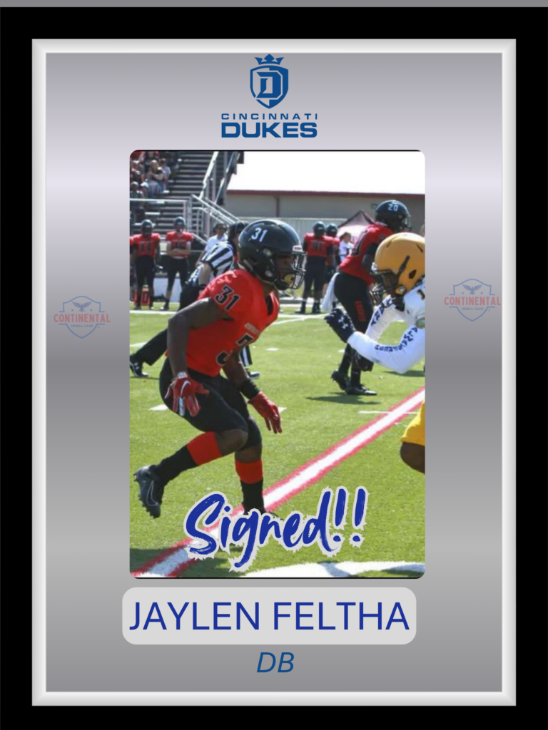 The Cincinnati Dukes are excited to announce the signing of defensive back Jaylen Feltha.